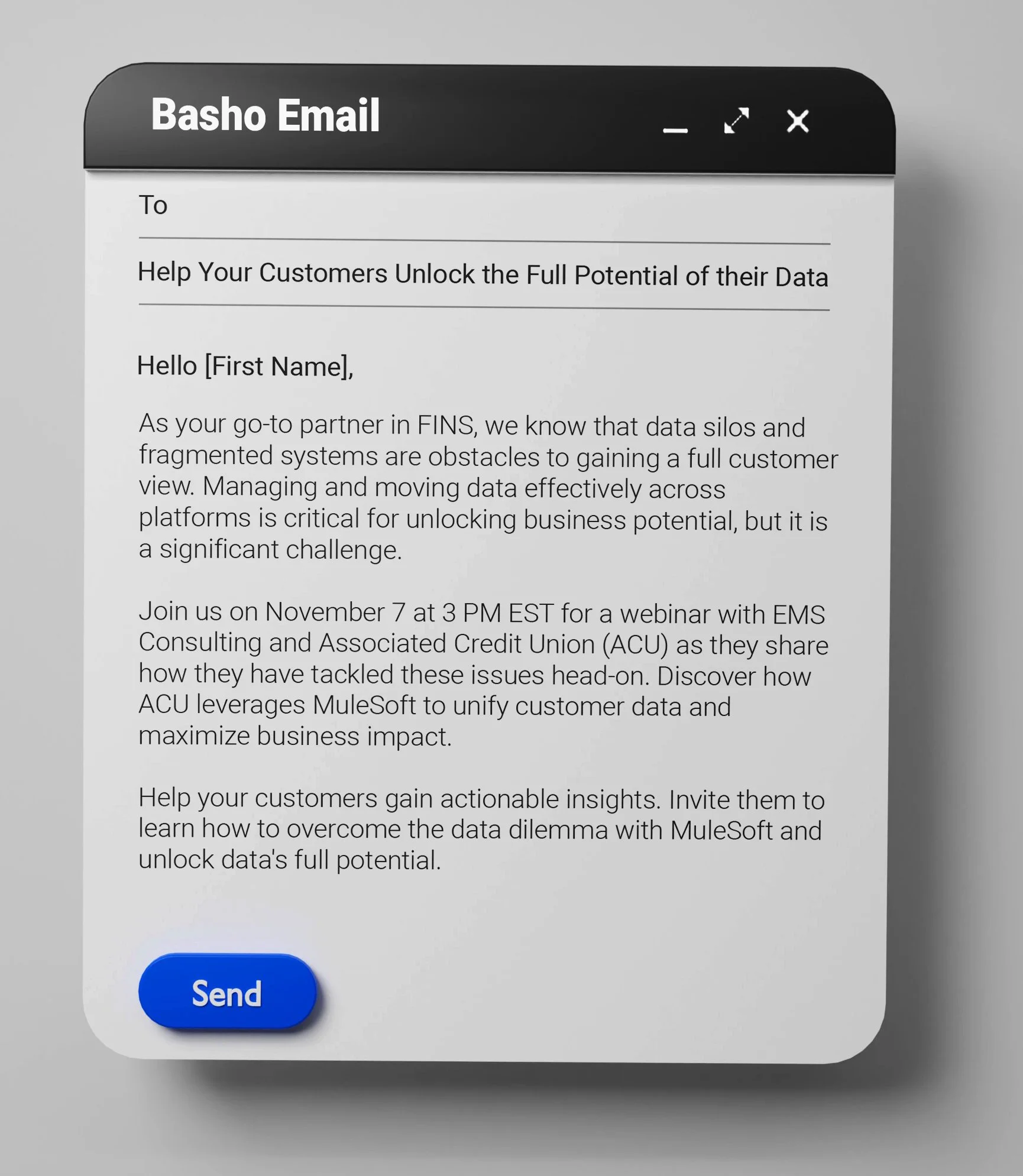 You are invited to join EMS Consulting, Salesforce and other banking and lending leaders to see how Associated Credit Union leverages MuleSoft and Salesforce solutions to transform, unify, and maximize their data potential to boost profitability and growth.